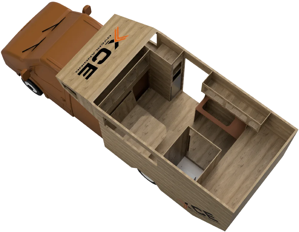 Unser Konzept des nachhaltigen Wandaufbaus adaptieren wir auch als Festaufbau auf alle Fahrzeuge mit Leiterrahmen. So können unsere Kabinen auch als Festaufbau für Pickup- und Pritschenfahrzeuge gebaut werden. Identisch zur Wohnkabinenfertigung sind hier fast alle Wünsche realisierbar.